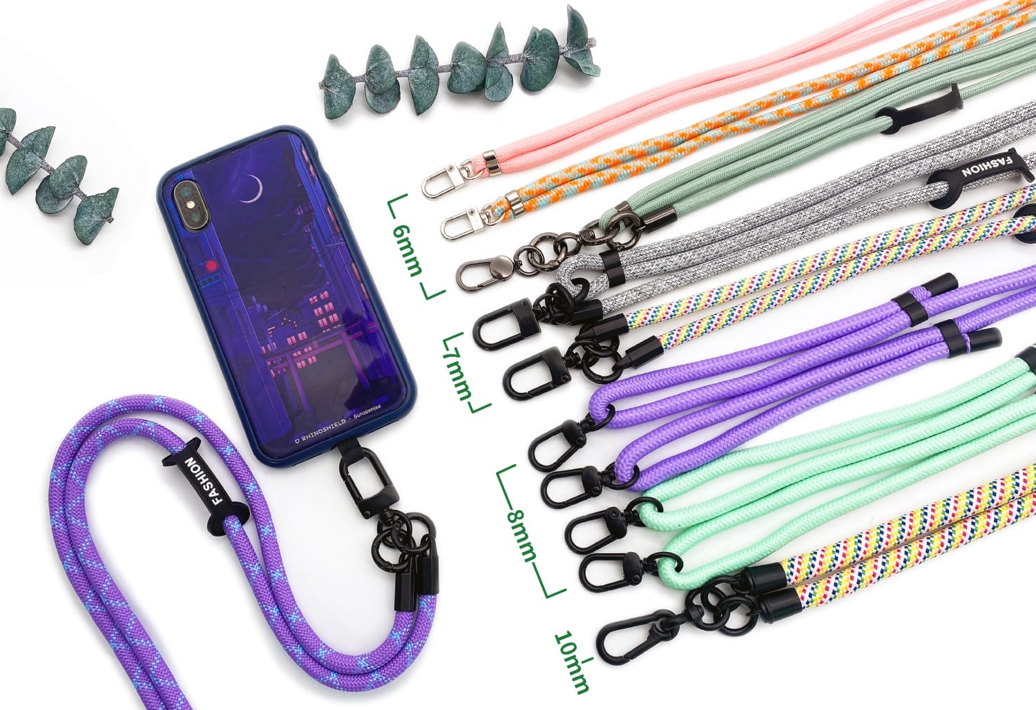 圓繩直徑 : 6mm、7mm、8mm、10mm (背帶常規尺寸1500 x 6mm、手腕帶常規尺寸350 x 7mm)